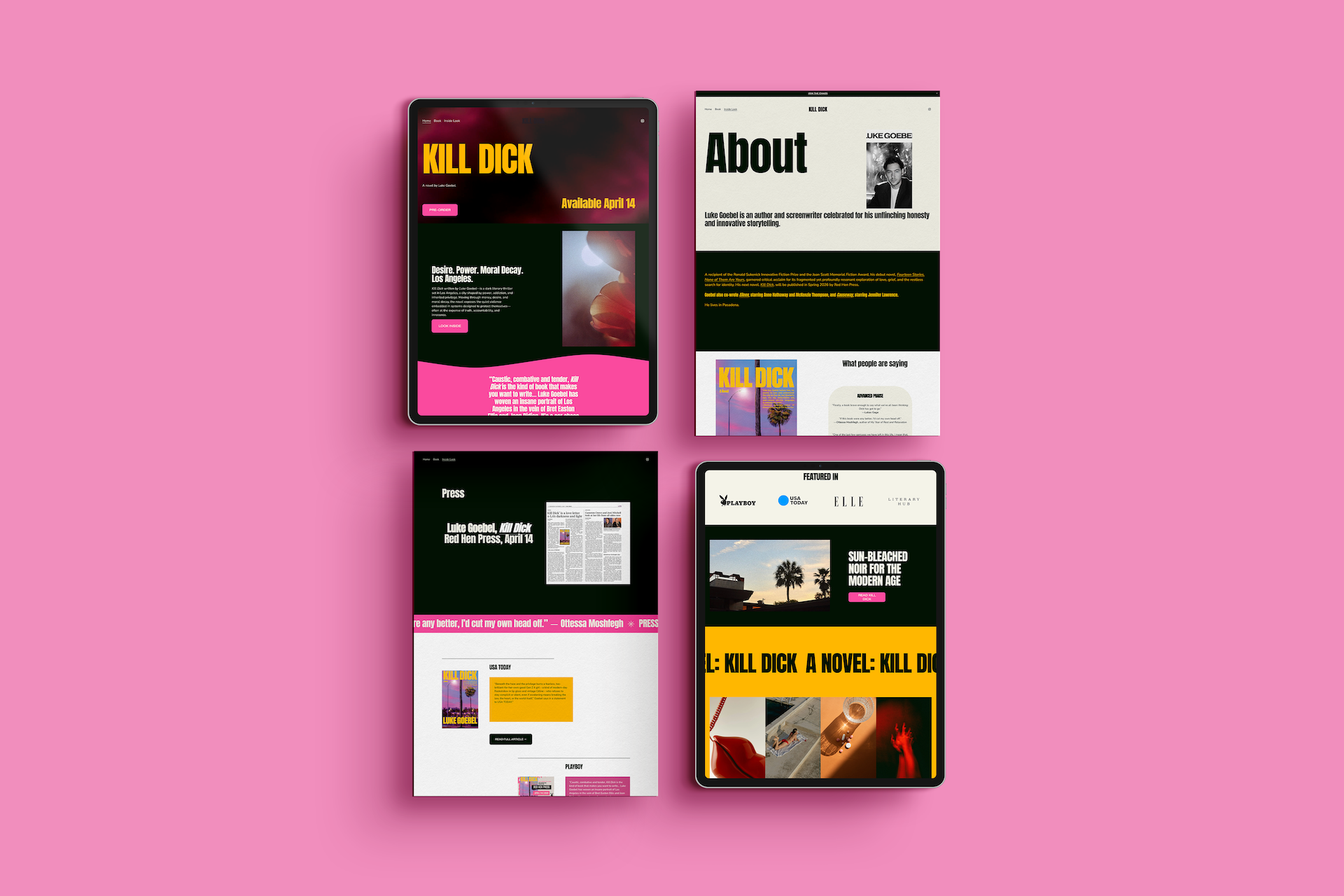 Creative direction and digital design for the launch of Kill Dickby Luke Goebel — including website design, merch direction, campaign assets, and social storytelling for one of 2026’s most anticipated book releases.